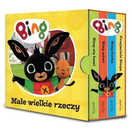 Każda książeczka jest poświęcona innej tematyce - Bing mówi to urocze zestawienie powiedzeń króliczka. Każda książeczka zachęca dziecko do tego, aby samo opowiedziało o tym, co dla niego ważne - co lubi, jak wyraża emocje, z kim się przyjaźni i jak najchętniej się bawi. Dzięki niewielkim rozmiarom książeczek kilkulatek może je z dumą "czytać" samodzielnie, oglądać bez końca i zabrać ze sobą na spacer, w podróż albo do łóżeczka! Kartonowe strony nie brudzą się łatwo, są wytrzymałe i odporne na najróżniejsze dziecięce pomysły! Dzięki zaokrąglonym rogom książki są bezpieczne nawet dla bardzo małych dzieci.