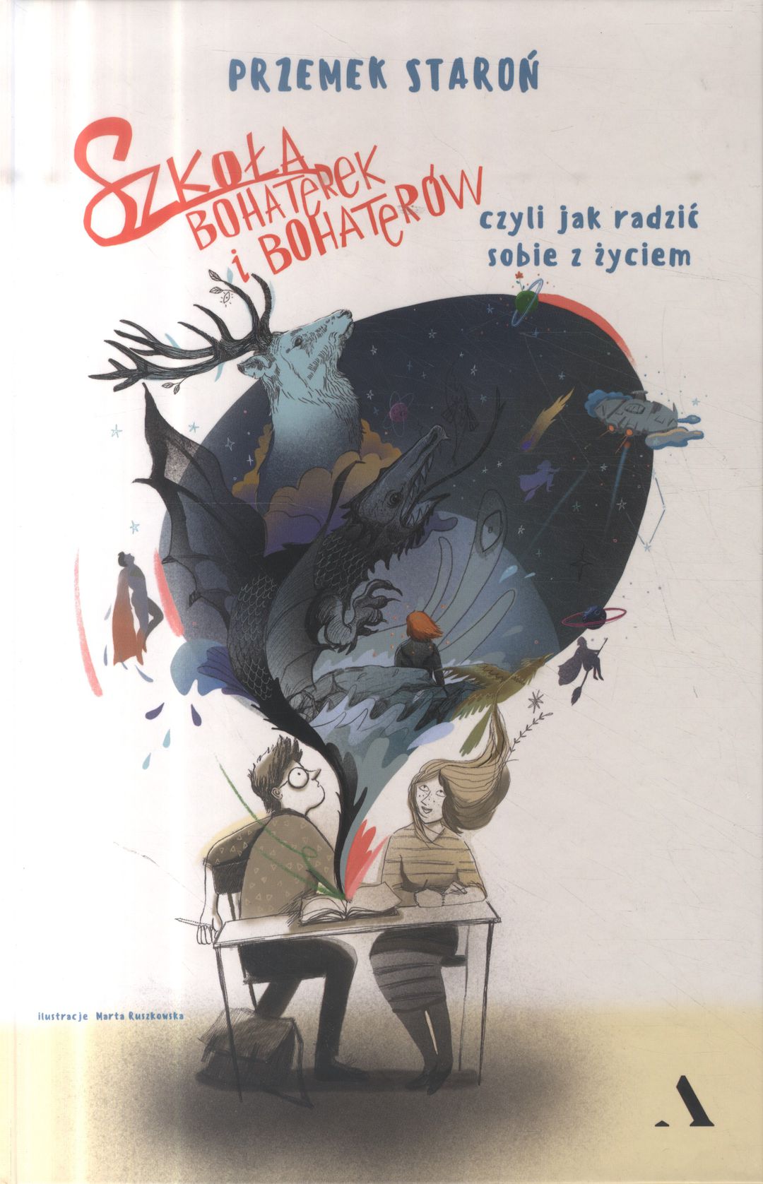 Nastolatki nie mają łatwo. Na każdym kroku wyzwania. Przemek Staroń przybywa ze wsparciem! Nauczyciel Roku 2018, psycholog, nauczyciel etyki i filozofii, nominowany do Global Teacher Prize, czyli „nauczycielskiego Nobla”, fan Harry’ego Pottera i klocków Lego zebrał od młodych ludzi pytania i wątpliwości, z którymi się borykają. Czy to źle być smutnym? Czy warto się zakochiwać? Jak znieść porażkę? Co się stanie, jak wyjdę przed szereg? Dlaczego wygląd jest taki ważny? Następnie odpowiedział na te pytania - opierając się na swojej wiedzy psychologicznej oraz na historiach bohaterów znanych z książek i filmów. Są wśród nich postacie z "Harry’ego Pottera", „Władcy Pierścieni”, „Stranger Things”, „Gwiezdnych Wojen” czy Avengersów. „Szkoła bohaterek i bohaterów” to poradnik psychologiczny, który czyta się jak powieść przygodową! Książkę ilustrowała Marta Ruszkowska, której poetyckie grafiki są jak materiał wprost na koszulki, torby czy tatuaże. Lektura idealna. Nie dość, że nie ma stempla od ministra edukacji, to jeszcze odsyła do fantastycznych książek, które… też go nie mają. A takie lubimy najbardziej. Wierzę, że książę Przemka pokochacie. I jeśli ktoś kogoś będzie zmuszał do jej czytania, to nie minister, a Wy. Zupełnie tak jak ja! Justyna Suchecka